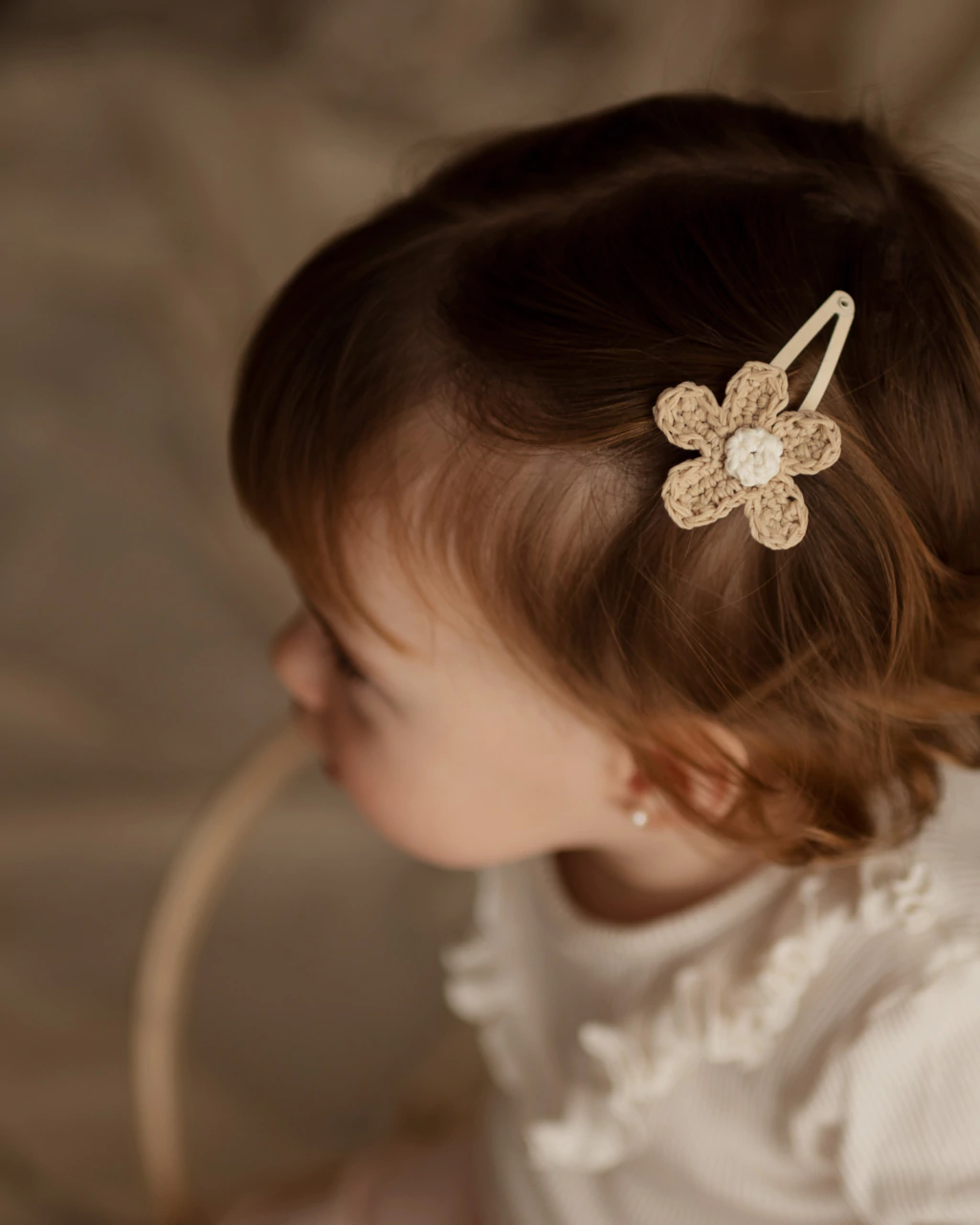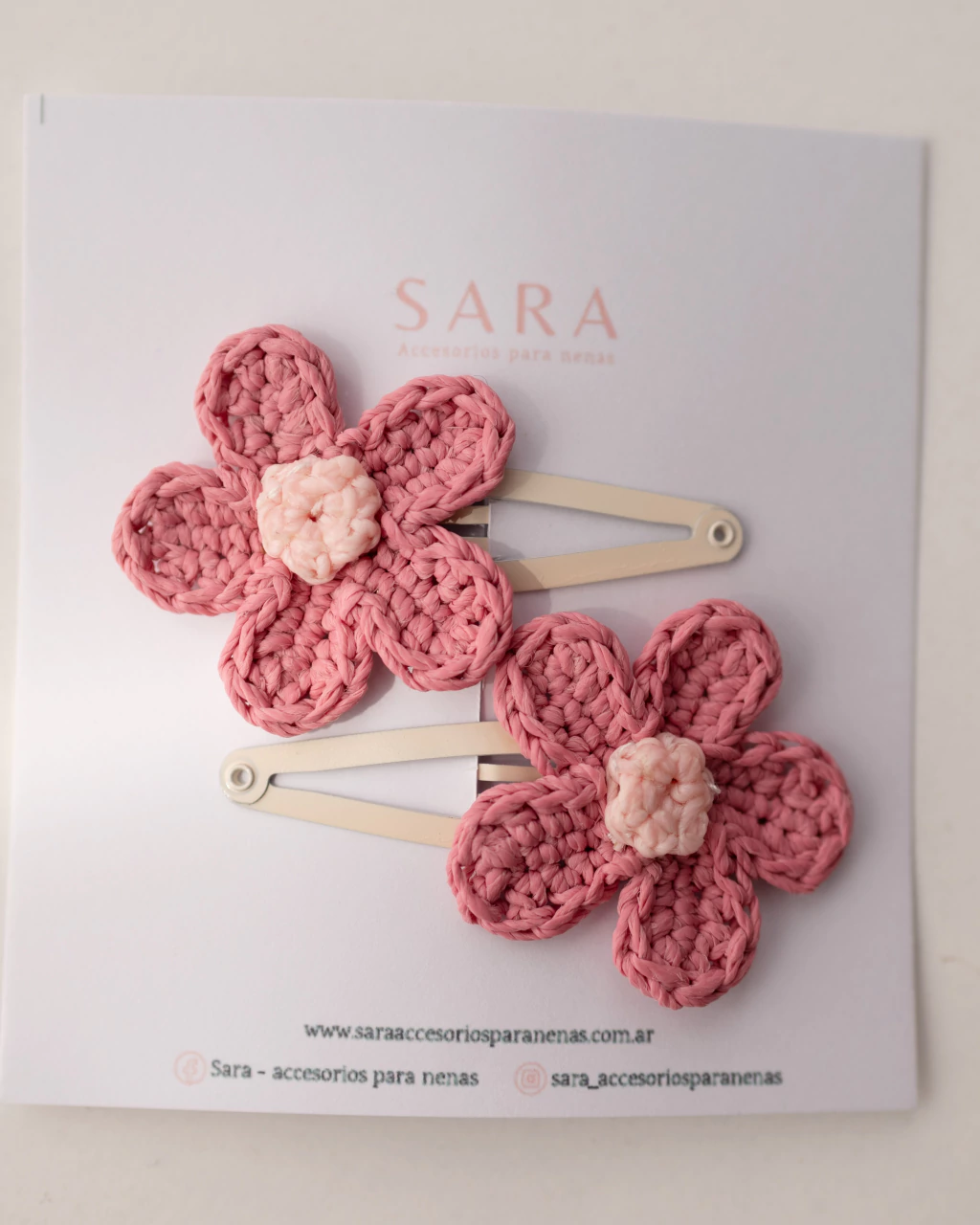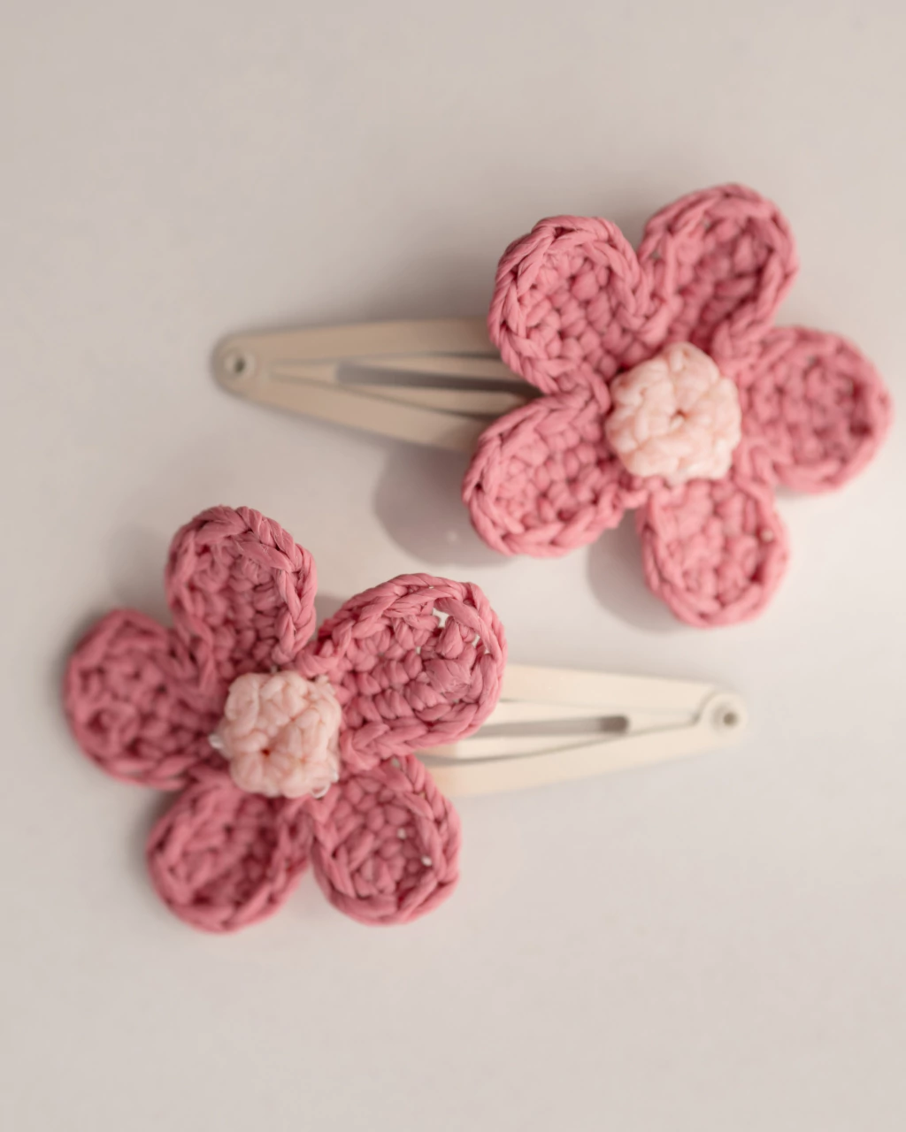 ¡Descubrí el Par de Tictac con Flor Tejida en rosa viejo, el accesorio ideal para las más pequeñas!
