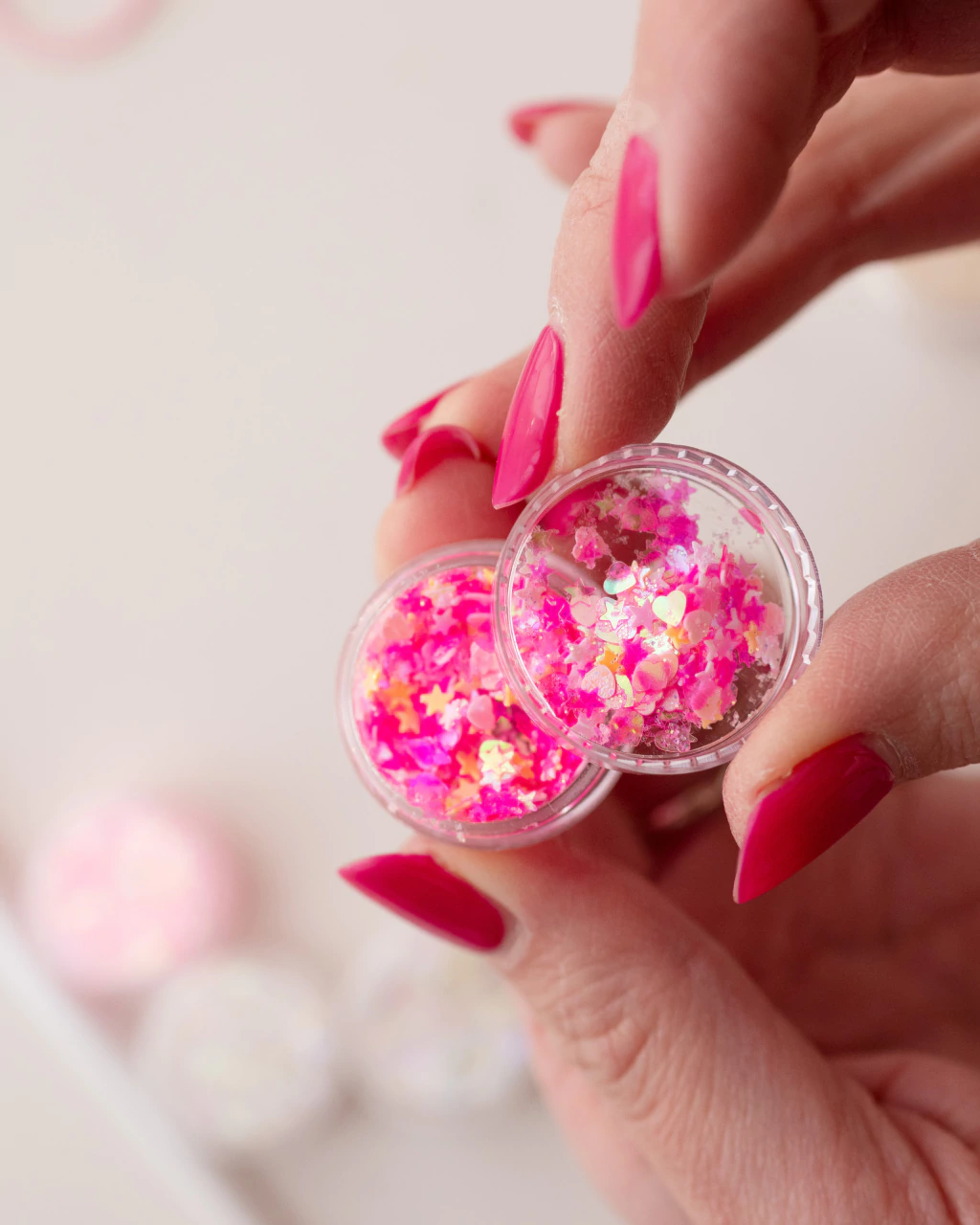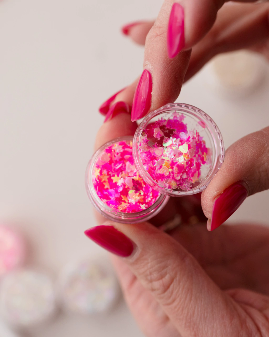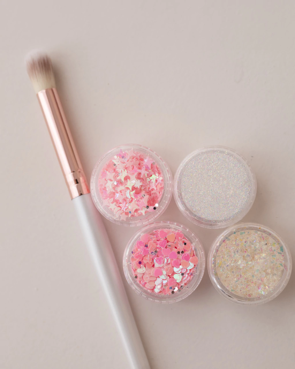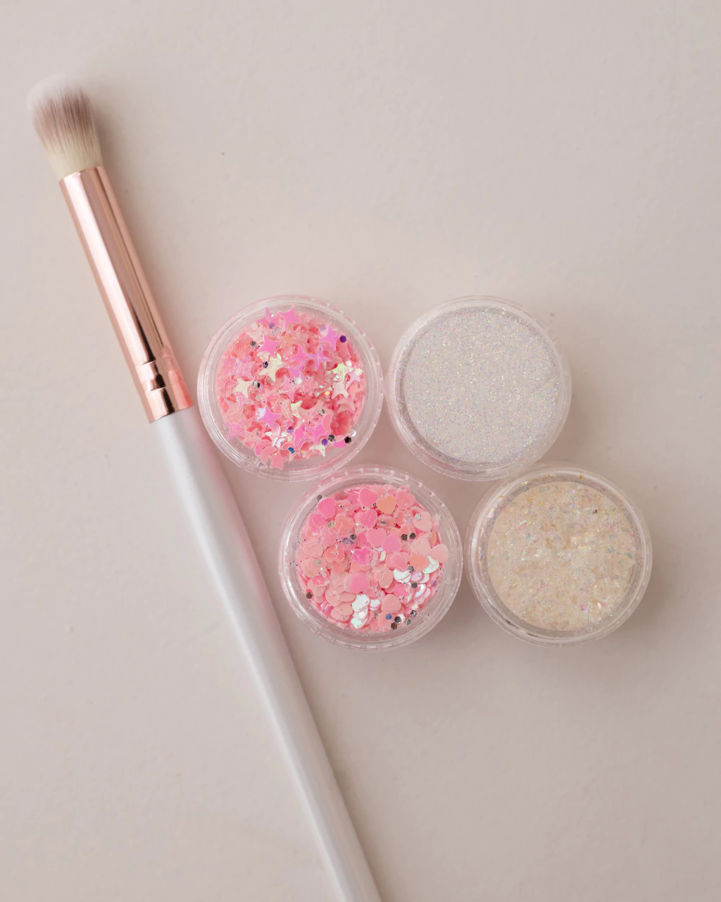 ¡Brillá con el Set de Glitter con Gel para Cabello que incluye todo lo necesario para un peinado espectacular! Este set viene con cuatro brillos — siempre dos en tonos blancos y dos en tonos rosas — junto con un pincel especialmente diseñado para facilitar la aplicación.
