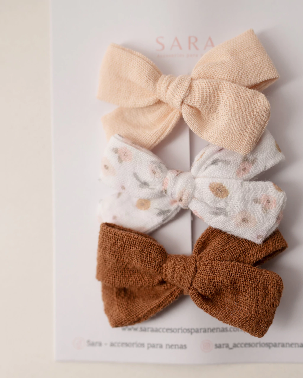 • En este sets te damos la opcion de tres moños diferentes para que puedas combinarlo con varias prendas.
